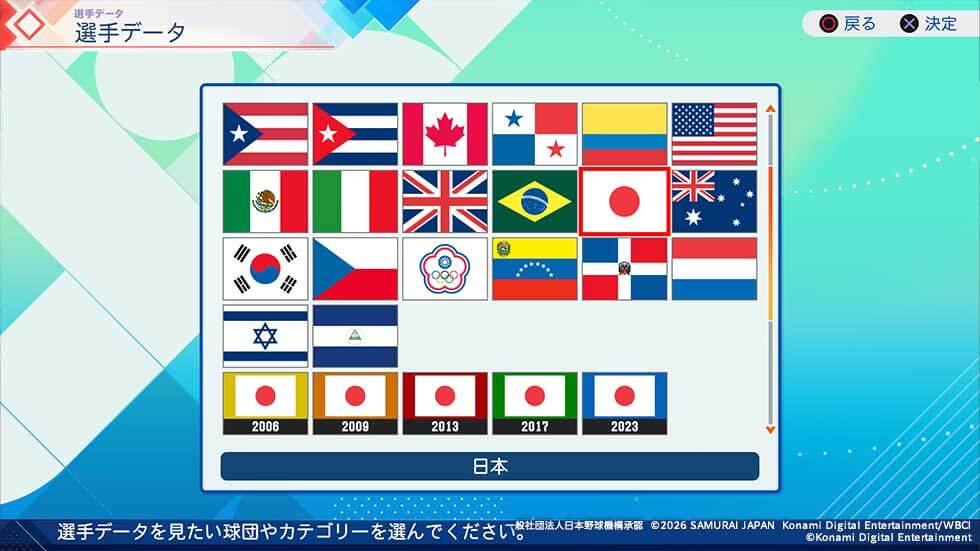 公式サイトを確認すると、権利表記に「2026 SAMURAI JAPAN」があるため、少なくとも2026年の侍ジャパンチーム(もしくはユニフォームのみ)は収録されそうです。