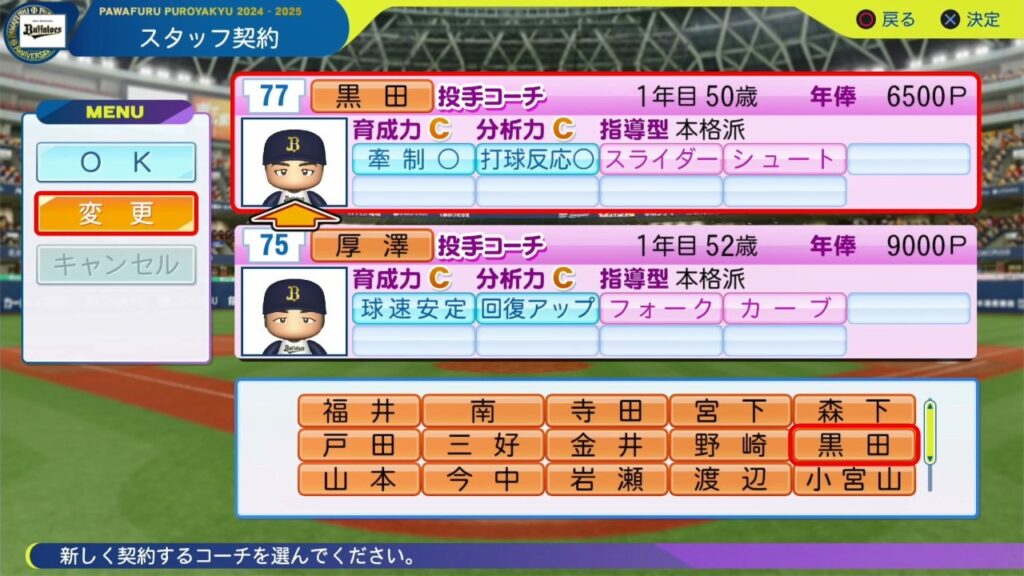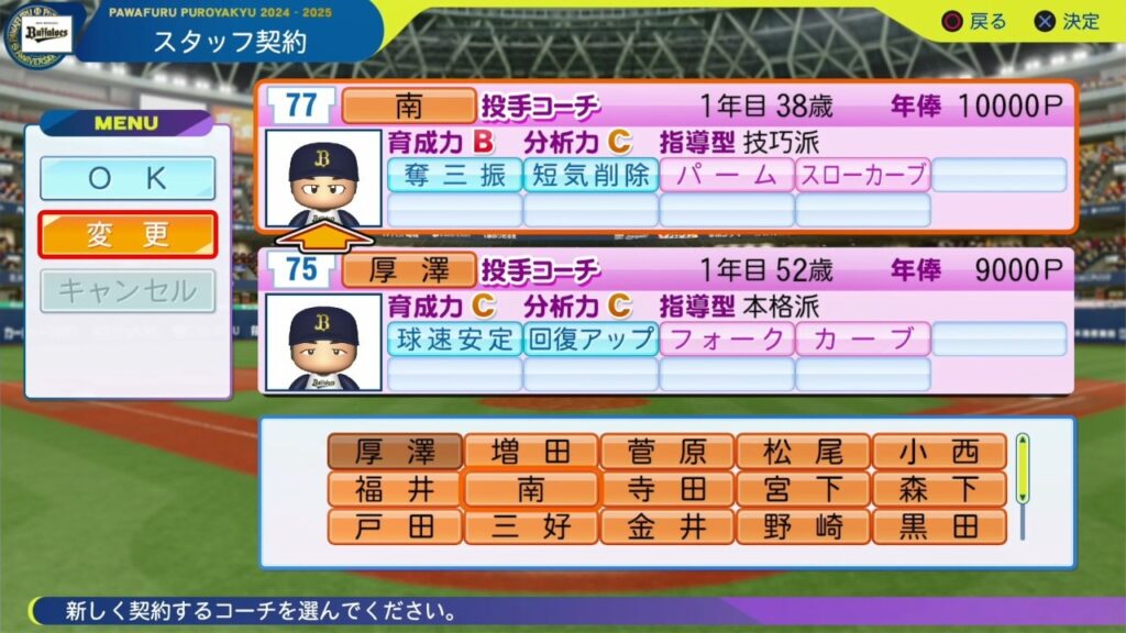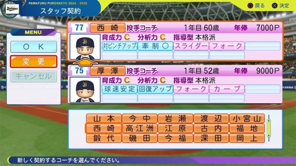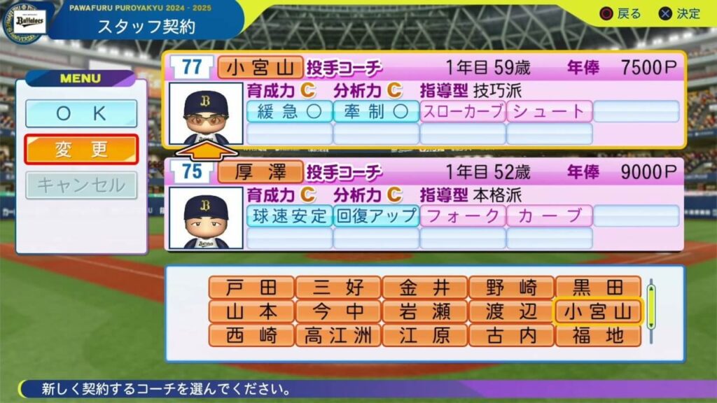 ペナントを快適に遊ぶためにも、この記事を参考にコーチを選んでいただければ幸いです。
